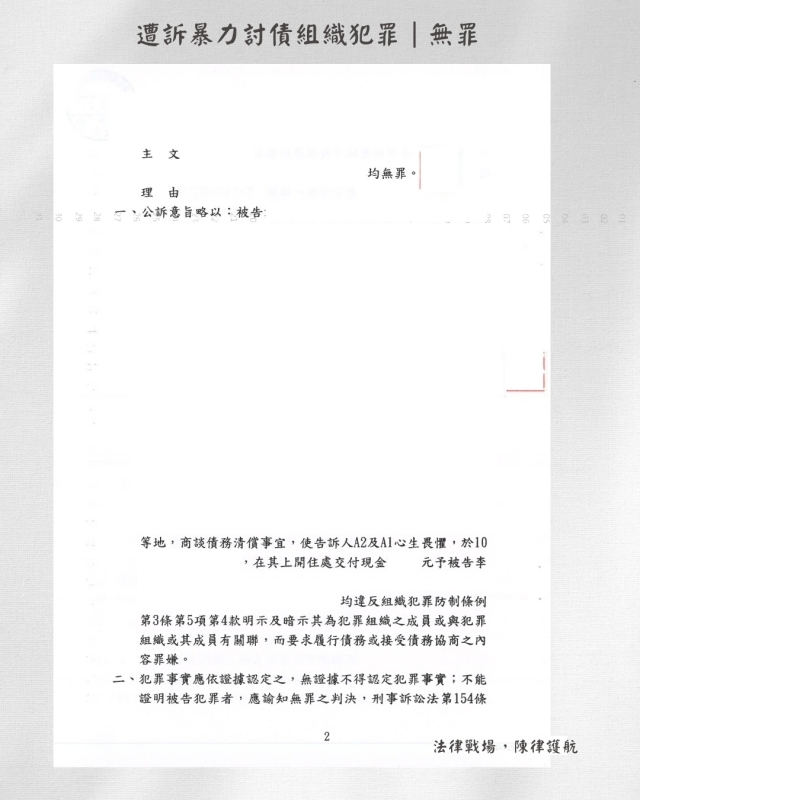 本件當事人因與他人存在金錢借貸糾紛,於共同交涉過程中,遭對方檢舉控告剝奪他人行動自由與恐嚇取財未遂罪。此類案件往往僅憑告訴人的一面之詞,導致當事人面臨刑事起訴。